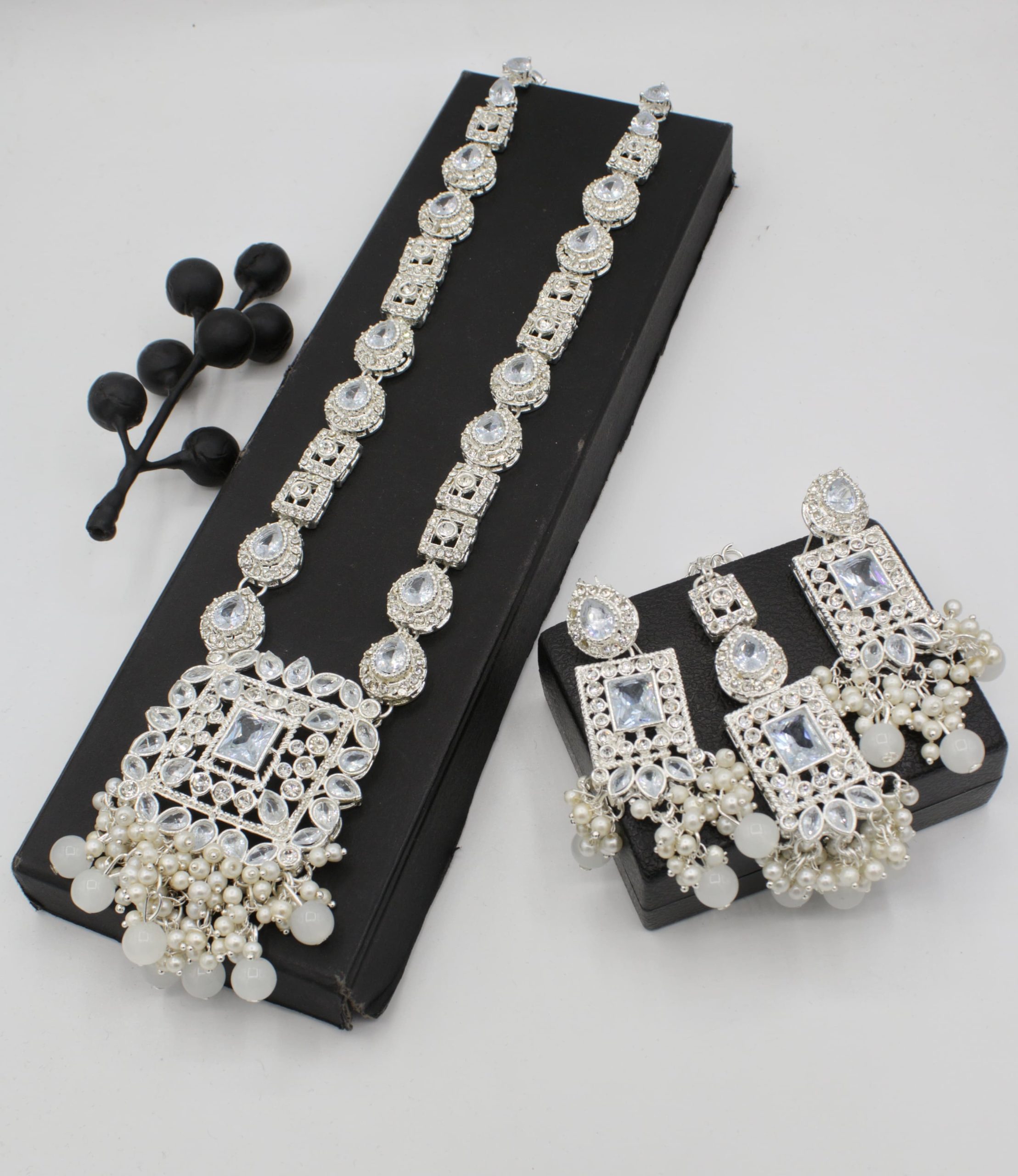 • Long mala necklace with matching earrings