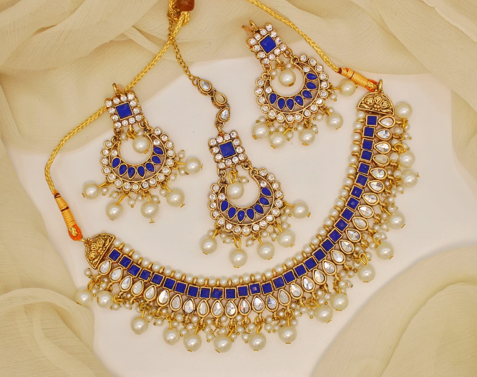 Traditional kundan necklace set featuring intricate stonework and royal elegance — perfect for bridal and festive occasions.