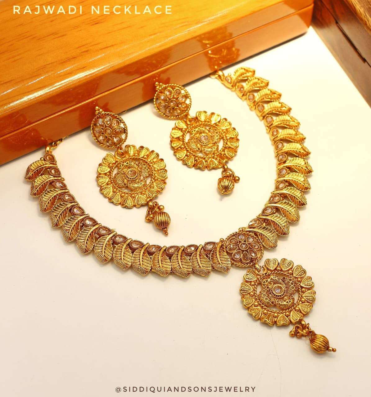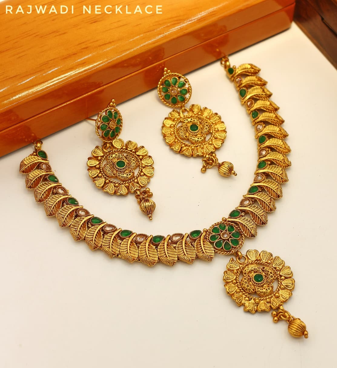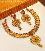 Ideal for brides, wedding guests, and festive occasions, the set includes a statement necklace with beautifully matched earrings. Each piece reflects the fine artistry and cultural richness of Rajwadi jewelry, making it a centerpiece for your ethnic wardrobe.