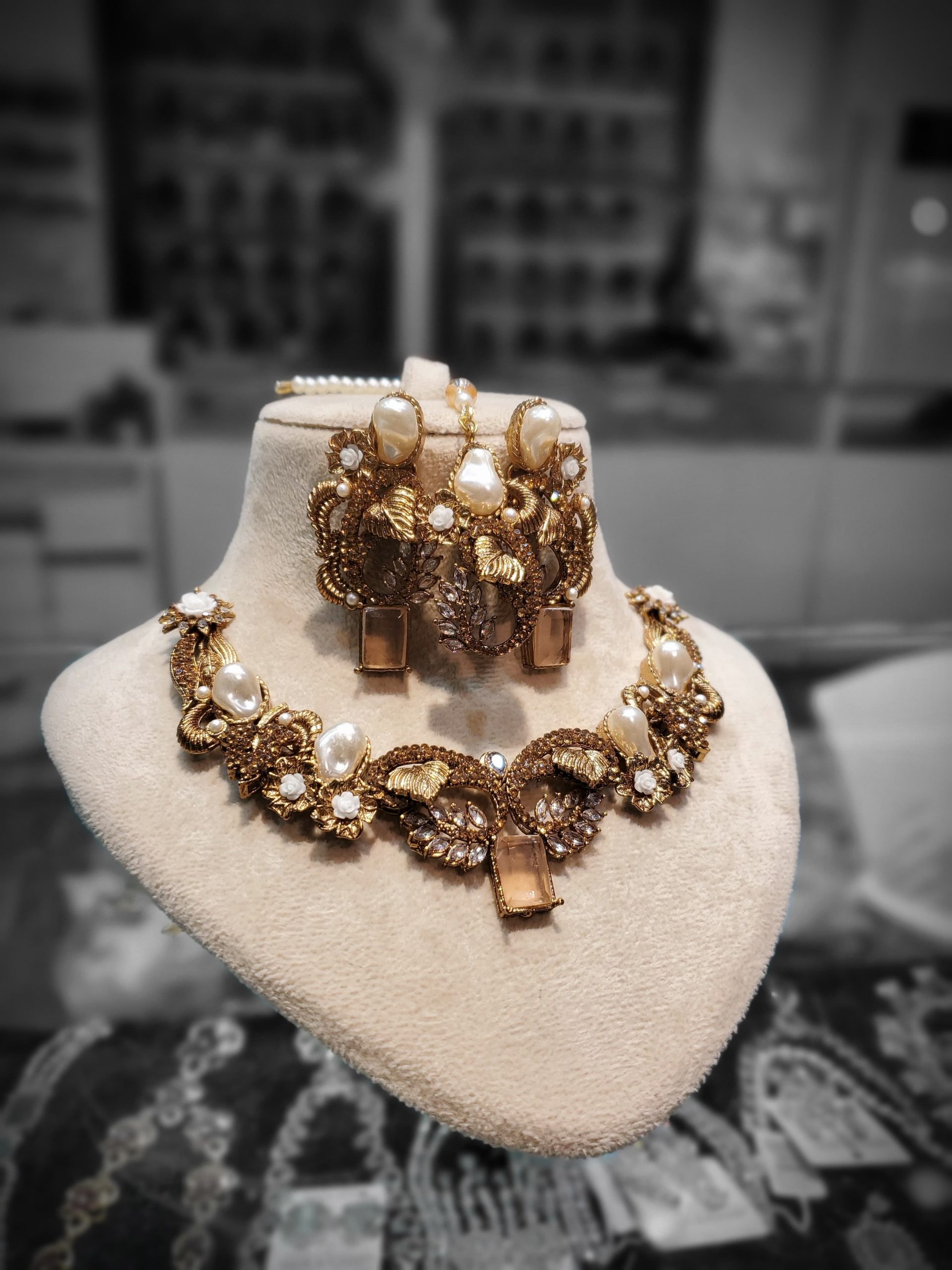 The Stylish Crush Set – Zehra Mirage blends trend-forward design with delicate craftsmanship, making it an ideal choice for fashion-forward jewellery lovers. This set features a striking textured finish and dynamic structure that gives it a modern edge while retaining timeless elegance. Paired with coordinated earrings, it’s designed to elevate both everyday and festive looks with ease. Lightweight, durable, and effortlessly chic—this set promises style that speaks volumes without trying too hard.