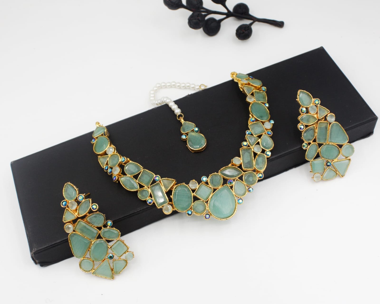 Whether you’re styling a saree, fusion outfit, or a western ensemble, this necklace brings a vibrant, eye-catching finish. The combination of high-quality stones and stylish craftsmanship makes it ideal for festive events, dinners, or statement looks.